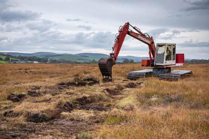 The work will include improving the conditions of the peatland preventing water from escaping from the bogs and at the same time restoring natural water levels. The project is also removing invasive species like Molinia grass and small trees that are taking over on the sites and drying out the raised bogs.