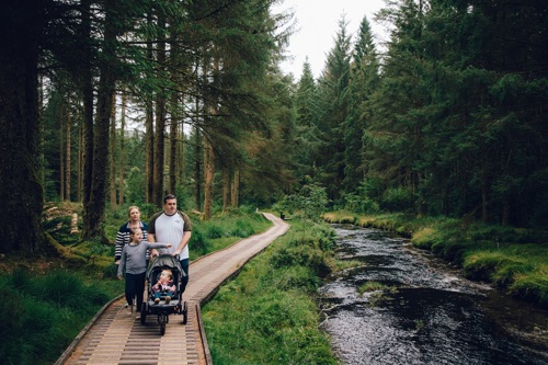 Dyma ein dewis o lefydd gyda llwybrau cerdded i deuluoedd.