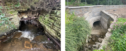 Figure 13: Photo on the left shows the damaged culvert following Storm Bert and the photo on the right shows the culvert after repairs.