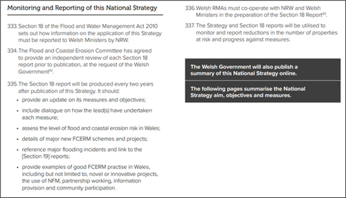 Figure 1: Extract from the Welsh Government National Flood and Coastal Erosion Risk Management Strategy detailing how the strategy should be monitored.